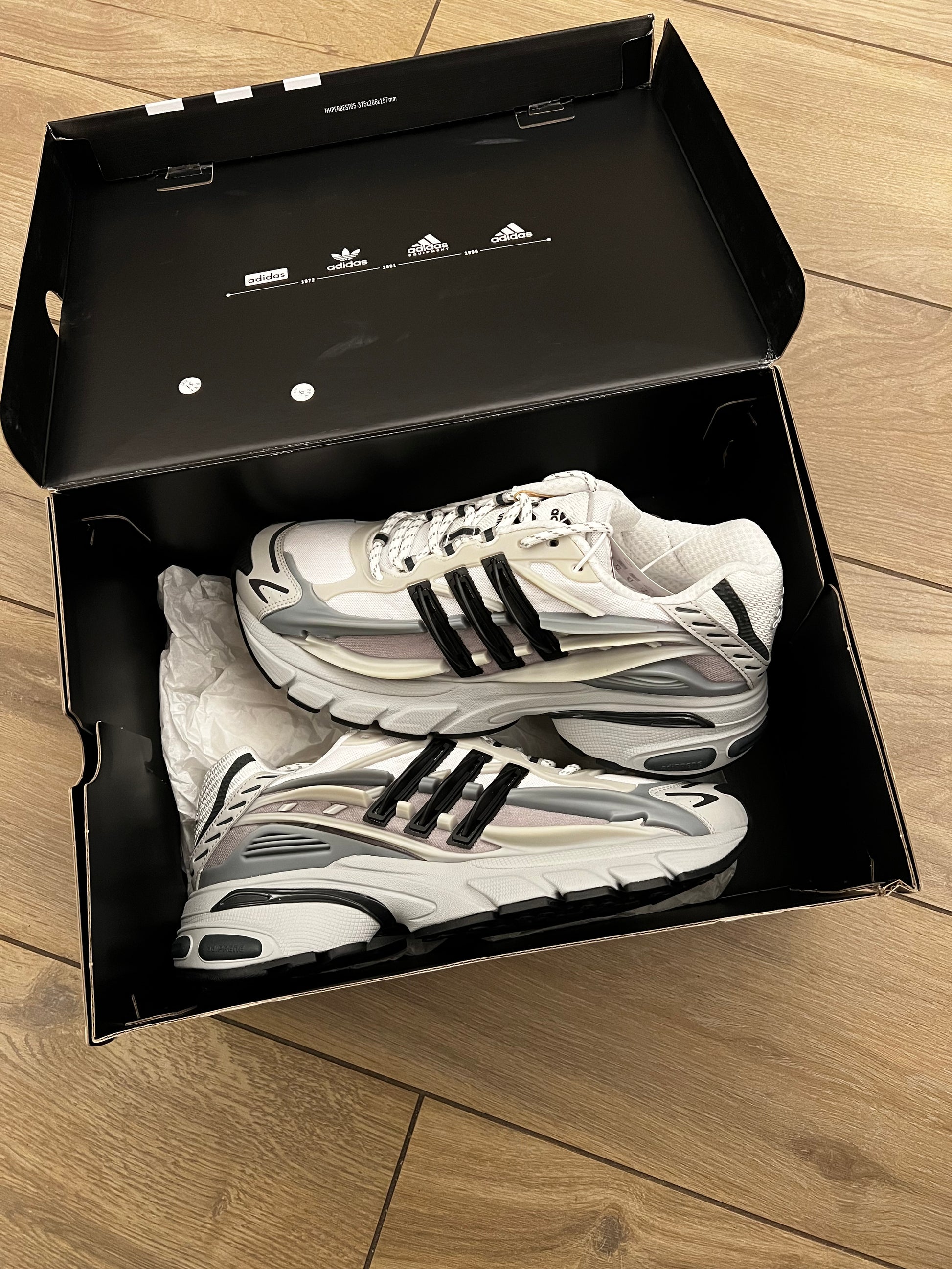 Le Pharrell x VIRGINIA x adidas Adistar Jellyfish 'Solid Grey Black' presentano un esoscheletro in TPU grigio e crema sovrapposto a una tomaia in mesh bianco traspirante, che richiama il movimento fluido di una medusa. Le tre strisce nere sagomate decorano il pannello laterale, mentre gli accenti riflettenti lungo l'avampiede aggiungono un elemento ad alta visibilità alla silhouette voluminosa. Sulla linguetta, una scritta adidas è accompagnata dal logo Jellyfish in rilievo e dal marchio VIRGINIA di Pharrell. L'intersuola in schiuma scolpita ad alto spessore integra l'ammortizzazione Adiprene nel tallone per una calzata confortevole.