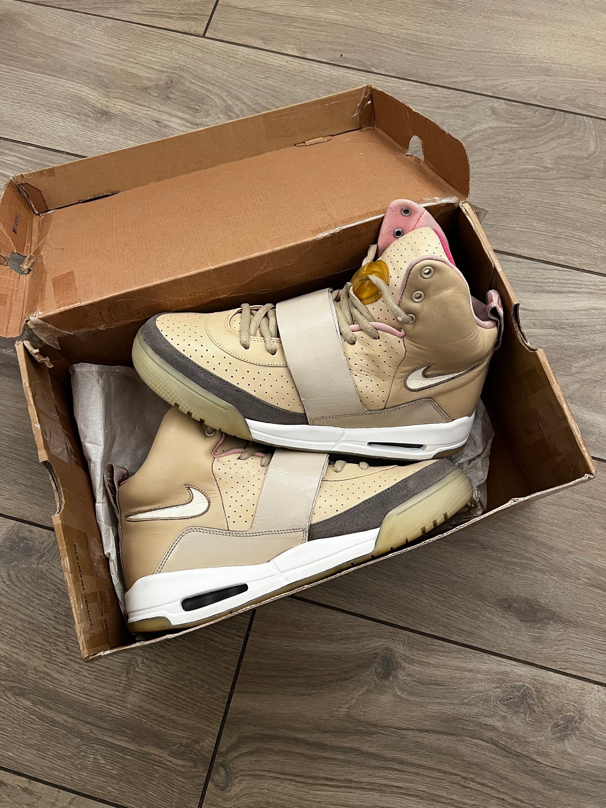 Le Air Yeezy “Net” sono uscite nel giugno 2009 e rappresentano la terza e ultima colorazione della sneaker di debutto di Kanye West con Nike a raggiungere i negozi. La scarpa presenta una tomaia in pelle beige che arriva fino a un colletto alto foderato in rosa, montata su un’intersuola bicolore presa in prestito dalle Nike Air Jordan 3. La finitura liscia e lucida della strap centrale in pelle verniciata è in contrasto con la tomaia traforata sull’avampiede e con il rivestimento in suede sulla punta, entrambi decorati con una stampa “Y” ripetuta.