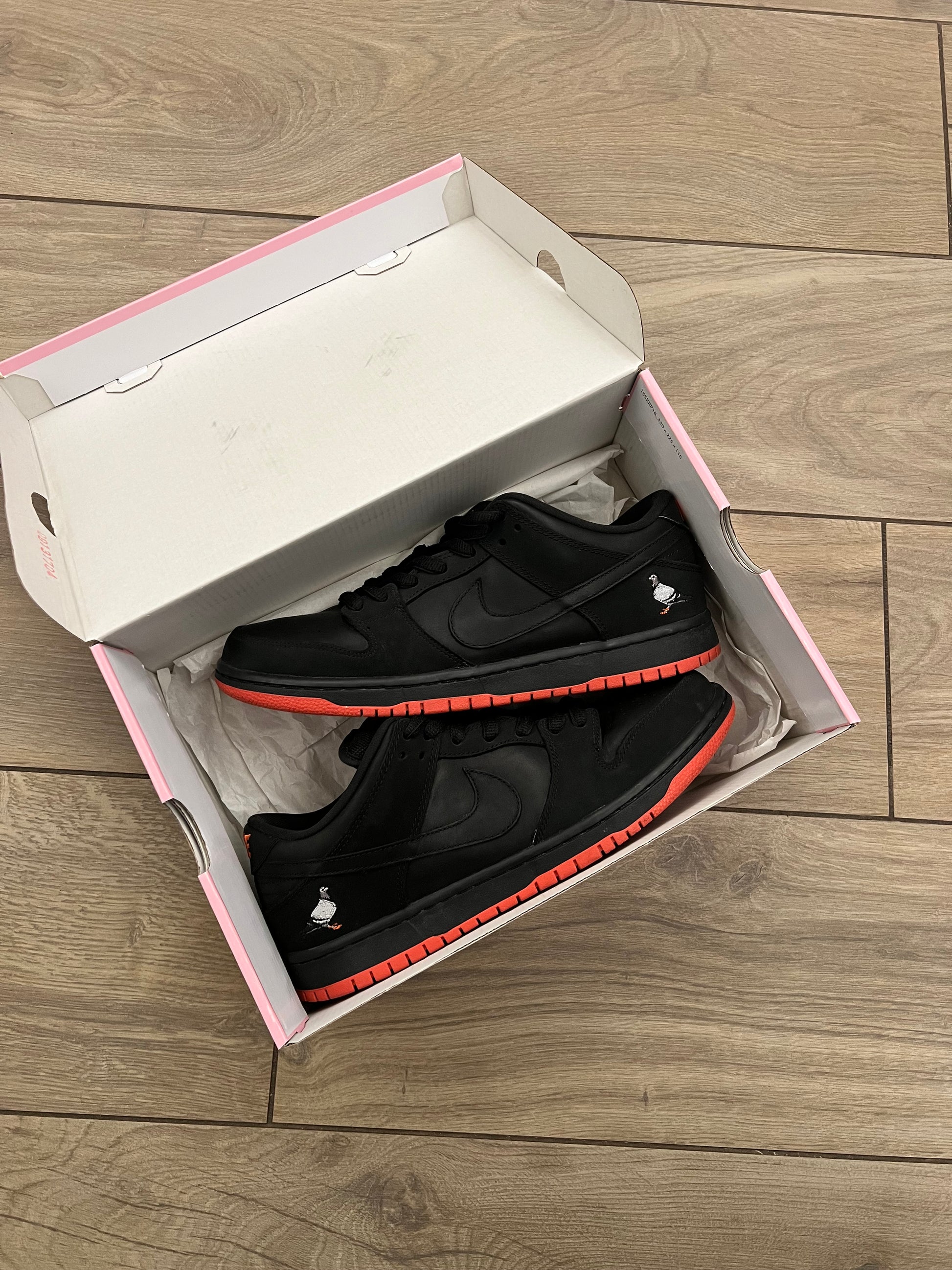 Lanciate a novembre 2017, le Nike Jeff Staple x Dunk Low Pro SB "Black Pigeon" si ispirano alla classica colorazione "Pigeon" di Staples del 2005. La scarpa presenta una tomaia in nabuk nero e pelle impermeabile Stetson con intersuola nera e suola color terra di Siena. Presentano inoltre la linguetta imbottita e spessa dell'originale e l'iconico logo Pigeon ricamato sul tallone.