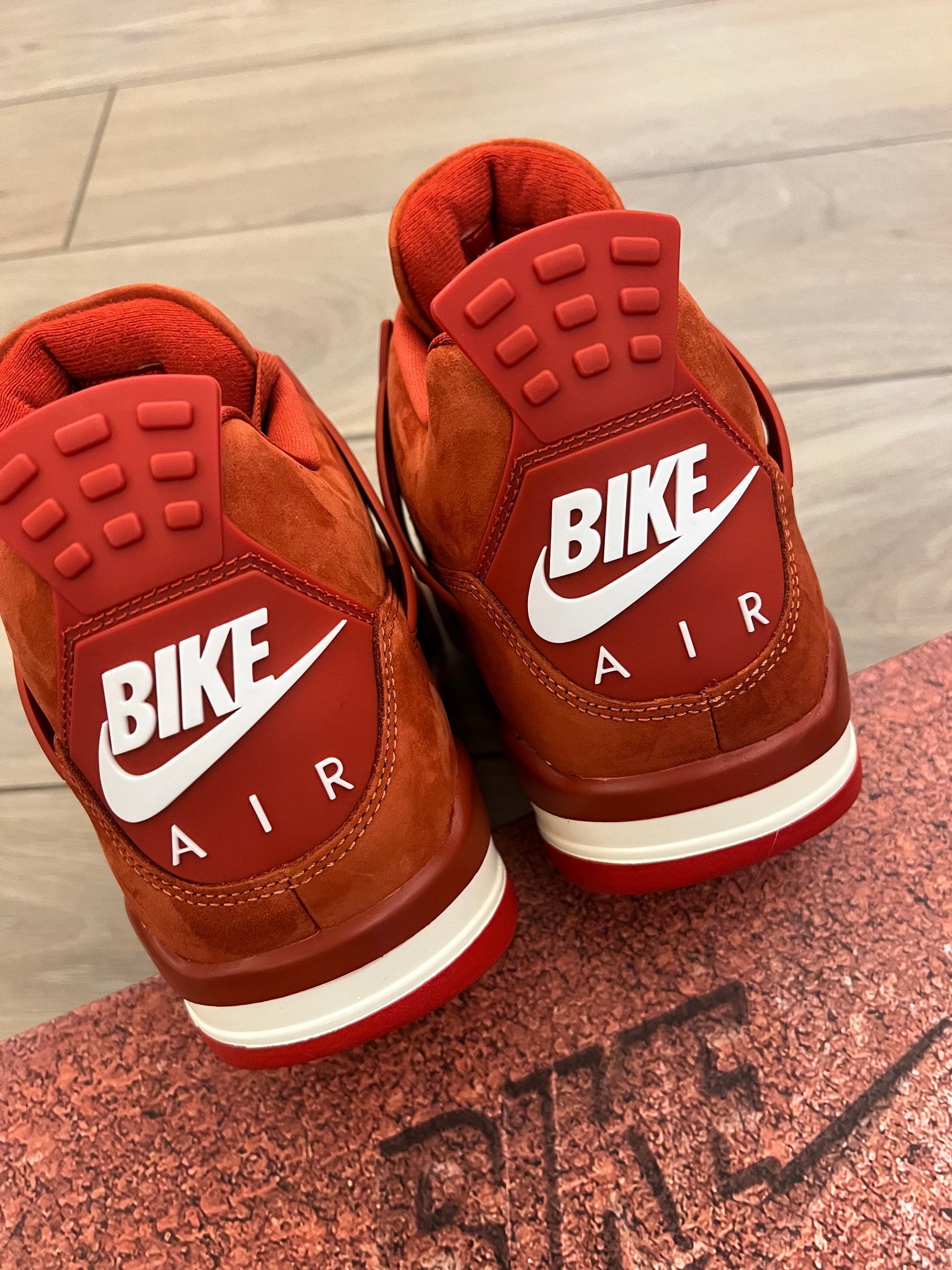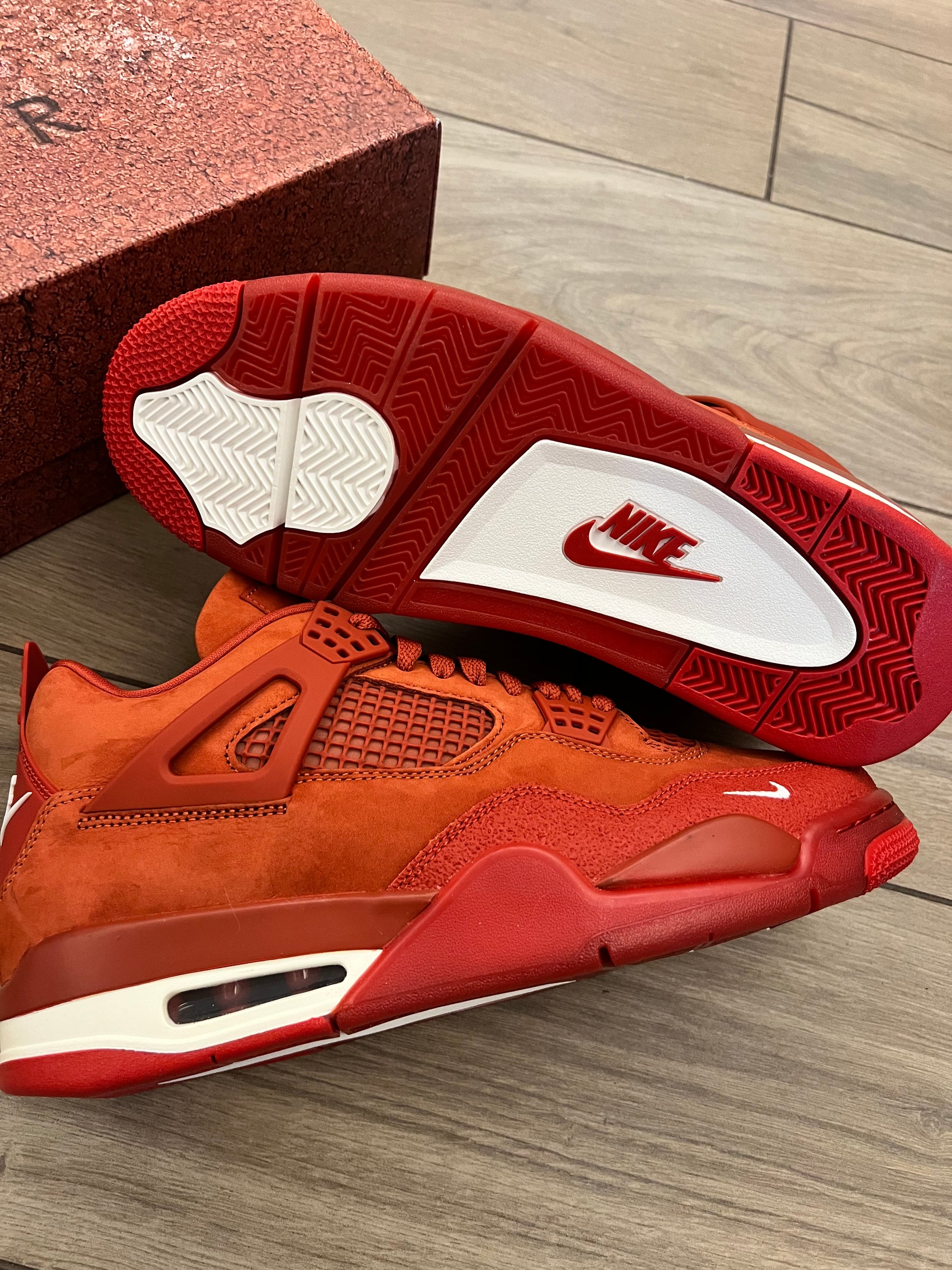 La Nigel Sylvester x Air Jordan 4 Retro OG SP ‘Brick By Brick’ presenta una tomaia monocromatica in suede rifinita nel colore Firewood Orange e include dettagli classici come la rete sui pannelli laterali, occhielli stampati e supporti in TPU.